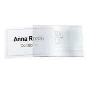 Portabadge con clip e spilla, formato 90x55mm.