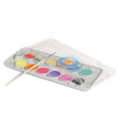 Pastiglie acquerello fluo e metallizzato ottenute comprimendo polveri ad alto contenuto di pigmento, di qualità speciale, in scatola in plastica da 12 colori, con pratico coperchio tavolozza e pennello. Diluite con poca acqua permettono di ottenere stesur