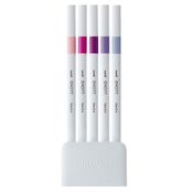 Fineliner con inchiostro a base acqua, dal design innovativo. Punta dotata di un rivestimento esterno che conferisce massima resistenza e lunga durata mantenendo inalterato lo spessore sottile del tratto. Astuccio 5 fineliner in colori assortiti: rosa baby, rosa puro, malva, lilla, nebbia.