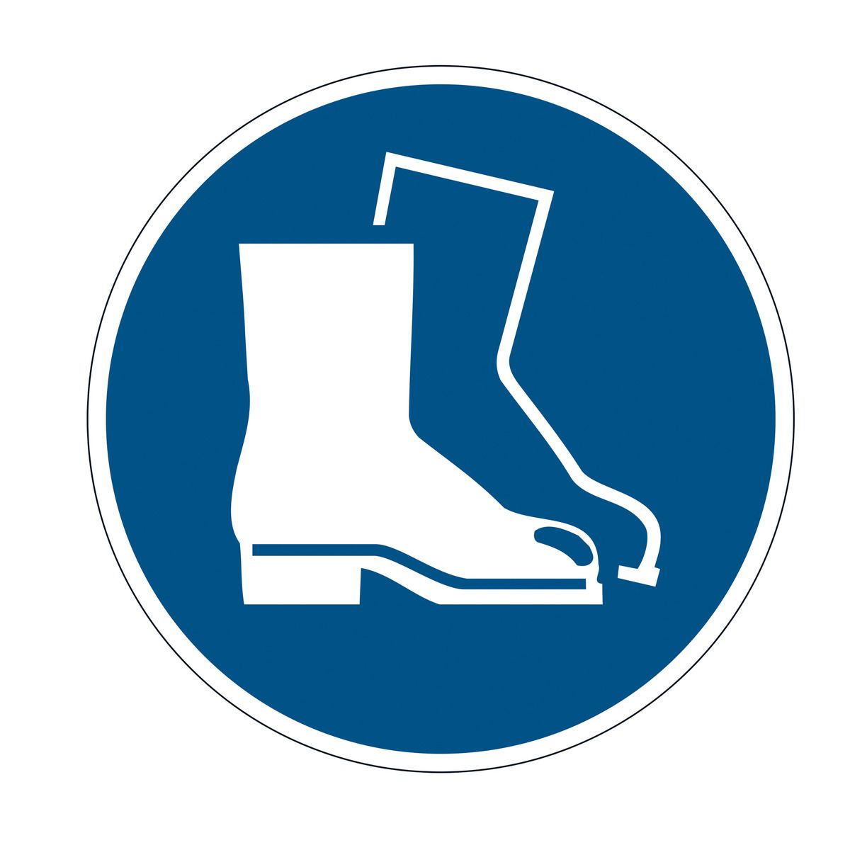 Segnaletica da terra per l'identificazione di aree pericolose, spazi di stoccaggio, passaggi pedonali ecc. Resistenza allo scivolamento R9 e conforme alla normativa DIN 51130. Conforme alla normativa UNI EN ISO 7010. Pittogrammi di sicurezza autoadesive per applicazioni su pavimenti in ambienti interni, come magazzini, centri di distribuzione, produzione, ecc. Resistente all'abrasione. · Pittogramma "Calzature di sicurezza obbligatorie" M006 conforme alla normativa UNI EN ISO 7010 · Robusto e resistente alle abrasioni · Resistenza allo scivolamento R9 conforme alla normativa DIN 51130 · Dimensioni: Ø 430 mm, spessore 0,4 mm