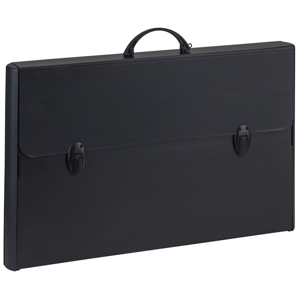 Valigetta in polipropilene alveolare nero con dorsi rigidi arrotondati in polipropilene nero.